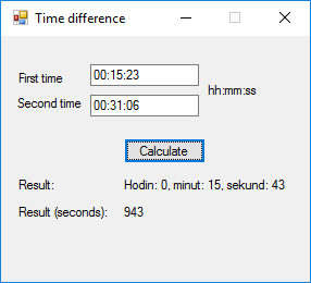 Výpočet času (s) mezi dvěma úseky (minutami)