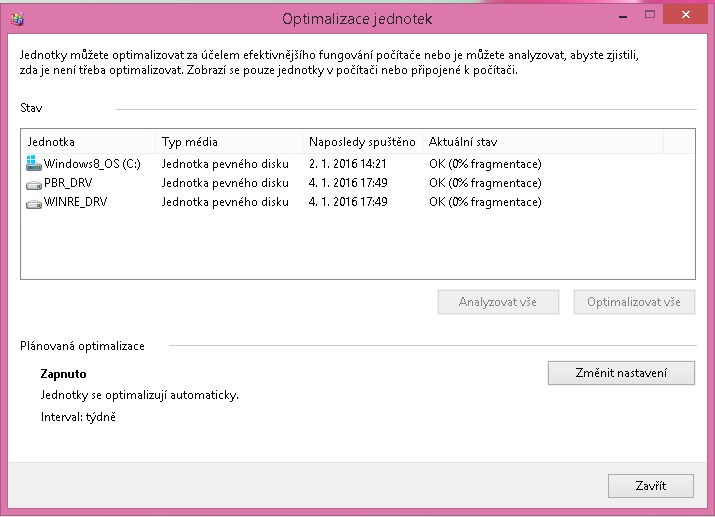 Tak snad z toho obrázku vidíš sám, že žádný z disků defragmentovat nepotřebuje. nový