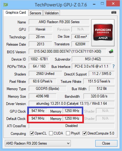 • Nainstaluj si zakladni utilitku <GPU-Z> a podivej se na zakladni hodnoty tvého GPU a jeho V-RAM, mas hodnoty znazornené v "MODREM" ramecku totozné s hodmotmy v "CERVENEM" ramecku?