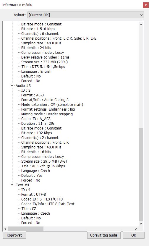 Serie tři která funguje má audio 2 jako AC3 a audio 3 jako DTS.Serie 4 to má opačně .