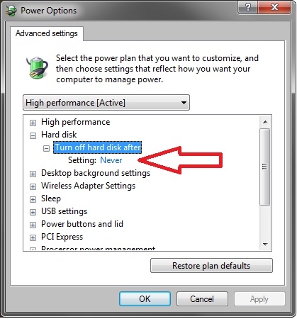 Zkoušel jsem prohledat všechno nastavení ohledně zapínání/vypínání disku a disky by se mi neměly vypínat.