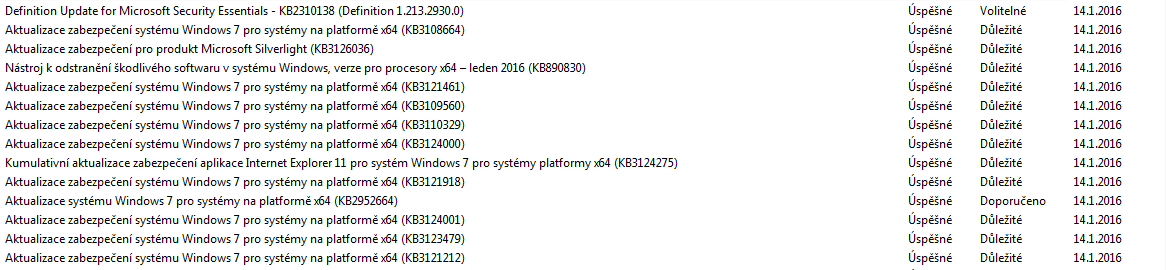 Tak jsem to několikrát zkoušel a bylo to jen chvilkové. I s odpojenou klávesnicí a myší to probudit nešlo. Zkusil jsem tedy odinstalovat poslední aktualizace, po kterých to přestalo jít a ejhle teď to jde probouzet jak myší, klávesnicí, tak i na casu. Čím by to mohlo být ? Nerad bych měl do budoucna PC neaktualizované. V příloze posílám foto o které aktualizace šlo.