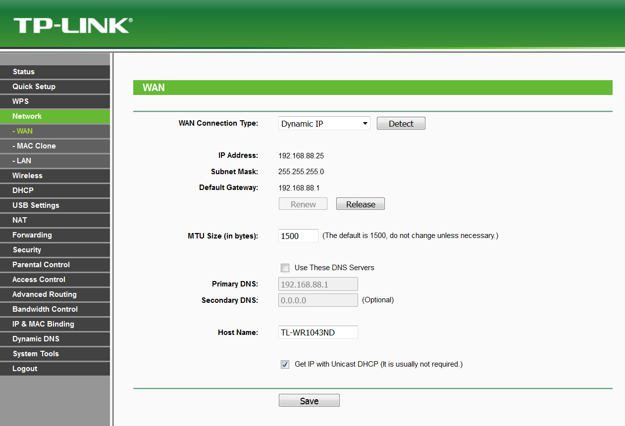 Máš dva routery. Jeden je ten TP-link a druhý je evidentně tvoje anténa, předpokládám něco jako Mikrotik SXT, podle IP adresy na WAN toho TP-linku. Zkus využít TP-link jako pouhý switch. To znamená vypnout na LAN DHCP, přepojit WAN do volného LAN portu a nechat to na anténě. ISP obvykle nechává zapnuté DHCP, to pak přiděluje adresy z rozsahu 192.168.88.x.