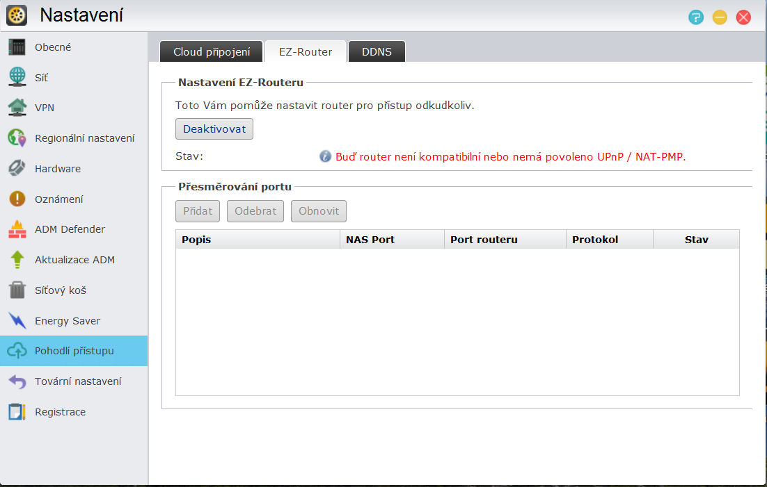 Díky. Měl jsi naprostou pravdu. Udělal jsem vše jak jsi říkal a mám teď TP link pouze jako switch a teď se chci zeptat. Může tak síť normálně pracovat s tím, že ten Mikrotik nahoře mi plně nahradí ten TPlink dole, v podstatě ho vyřadím a využiju z něj jen wifi? Mikrotik Tplinku přidělil navíc nově adresu, kterou nemůžu najít a dostat se do něj... Zkoušel jsem po novu Asustor a zprovoznit jeho EZ router a Cloudconnect a píše mi to hlášku (poslal jsem to v příloze), že router tentokrát není buď kompatibilní nebo nemá povoleno UPnP/NAT na Mikrotiku, přikláněl bych se k tomu druhému, co s tím? Může mi na dálku provider ten mikrotik nějak zpřístupnit nebo sám povolit UPnP? Mám tu od minulého providera prográmek Winbox, kterým si spravoval jiný Mikrotik, ale když dám connect tak si začne projíždět porty a zasekne se u portu 80, co s tím tentokrát prosímtě, zavolat mu, spravit na dálku nebo se pokusit zas sám? Děkuji moc za radu.