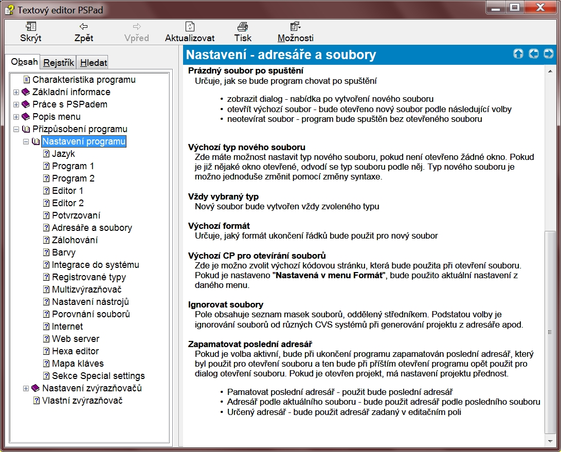 Jinak si PSPad pamatuje pro kazdy soubor informace jako pozice, zalozky, atd. a soucasti je i posledni pouzite kodovani.