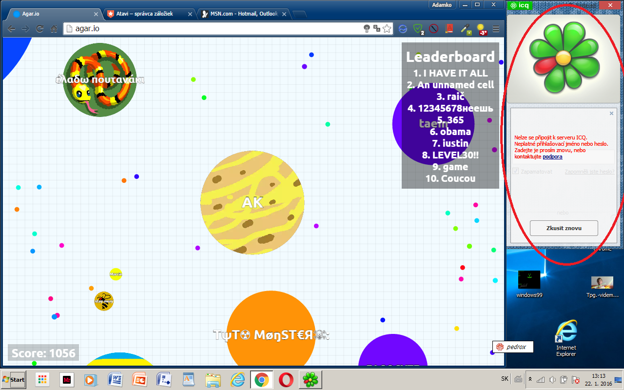 VÍTEJTE, na ICQ jsem si dal nové heslo na mém stolním počítači. dnes, když jsem si zapnul můj notebook tak my vyhodilo hlášku, která je v příloze.