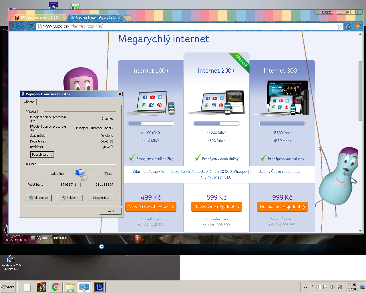 ale to je vedlejší ale stále se to objevovalo. Párkrát jsem chytl nerva a šel jsem zkontrolovat diodky od modemu. Svitili normálně ale někdy nesvítilo online a vždy jak došlo k dlouhodobému odpojení internetu tak počítač to vyřešil tak, že resetoval adaptér a problem se stejnak vrátil (né vždy)