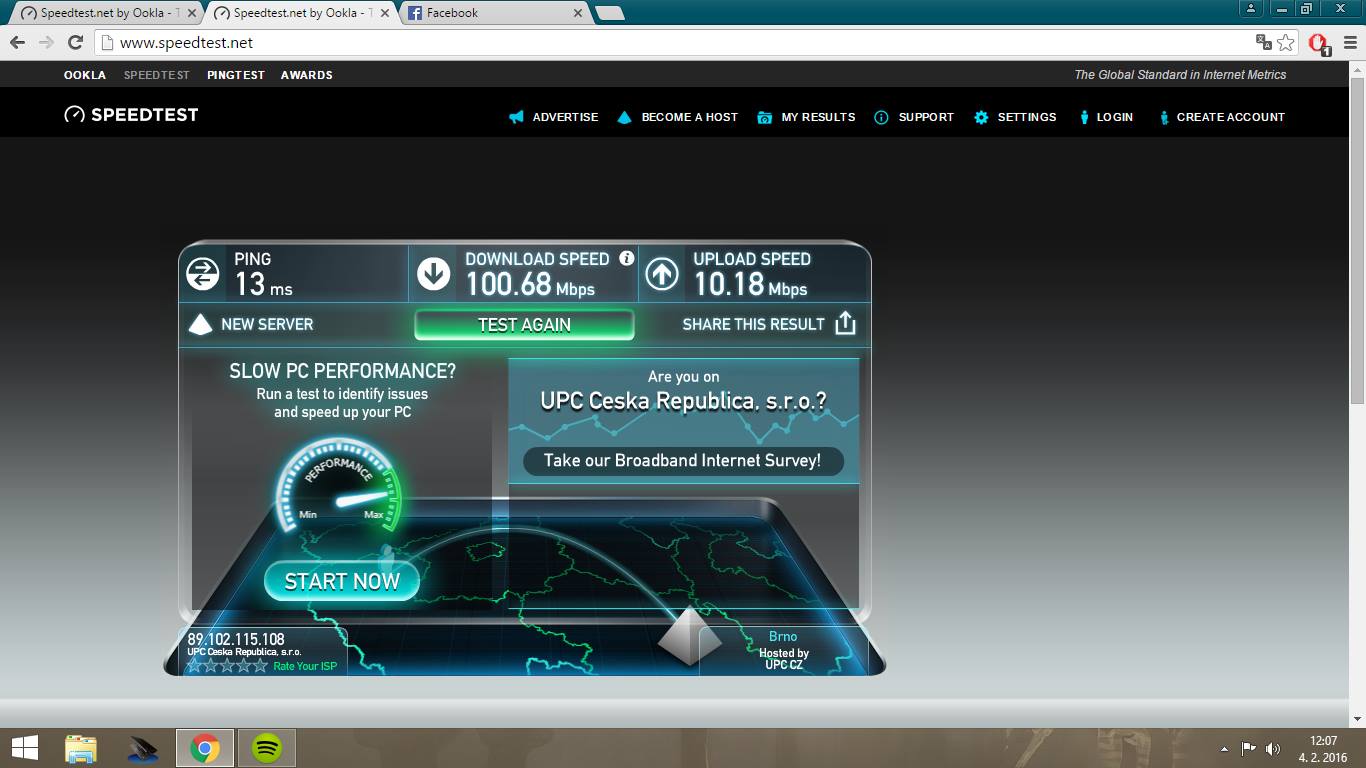 Bohužel musel bych táhnout kabel přes obývák a chodbu, takže lan je nemožný. Zkoušel jsem zapojit LAN do notebooku (ten je mimochodem nepoužitelnej skoro) a vyšlo tohle: