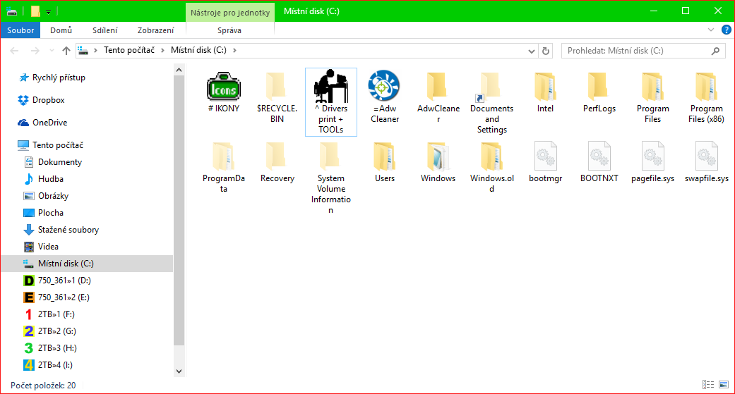 Složku doporučuji napsat C:\# IKONY , aby byla na začátku, že je cizí-tvoje a změnit vzhled.