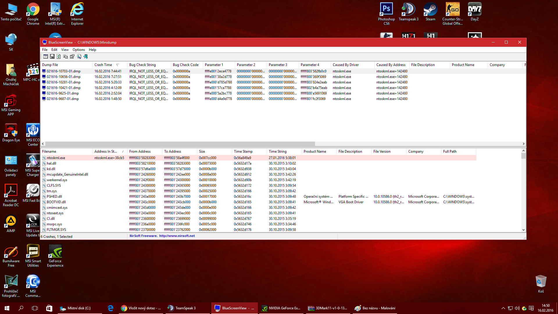 Prosím potřeboval bych pomoc, nejsem žádnej ajťák, ale komp mi z ničeho nic začal házet Blue Death pokaždé co zapnu nějakou hru :) chyba na blue death je IRQL NOT LESS OR EQUAL. Podíval jsem se teda do Bluescreenview(viz. obrázek). Netušíte někdo co s tím prosím, jsem z toho celkem zoufalý, na googlu jsem hledal nějaký fix, ale nic moc :). Díky