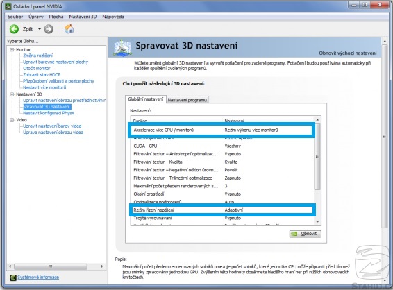 • Doporucil bych ti, zhlédnout a prenastavit vlastnosti grafické karty v Nvidia Panelu.