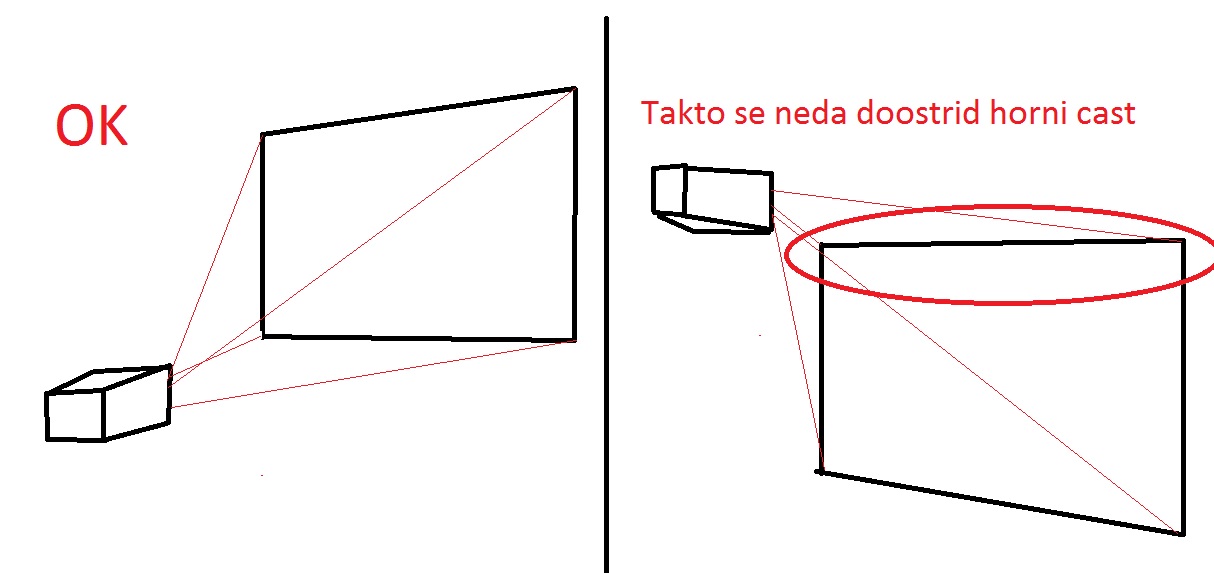 Kdyz je projektor vys nez obraz, neboli kdyz sviti z hora a nasteluju si korekci aby nebyl sesikmeny, tak se mi horni cast obrazu rozmazava a neda se to zaostrit, kdyz to zaostrim, tak mi to zase rozmaze spodek a stred obrazu..