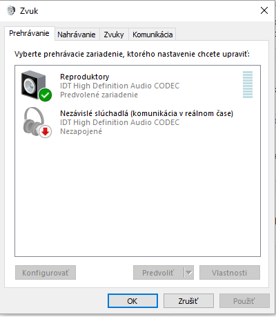 # Zrejme po "Realtek", obyvkle v liste dole v prvo klinky pravym mysi a podivej se do nastaveni VYCHOZI audio vystup, co tam mas udané.