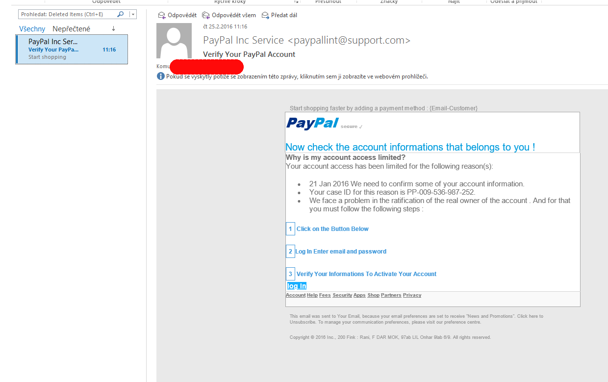 Obdržel jsem mail, dle obrázku. PayPal nemám, nepoužívám. Tak aby na to nikdo neskočil....