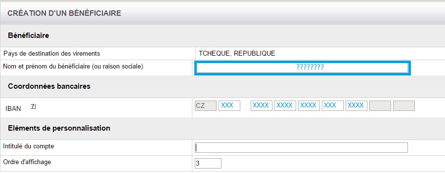 Zkousel jsem pouzit mé dve bankovni konta : <SOCIETE GENERAL> i <BANQUEPOSTALE>, ale obe dve mi vraci, ze nemam uvedené "jméno drzitele".