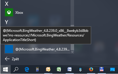 W10 nefunkční aplikace BingWeather