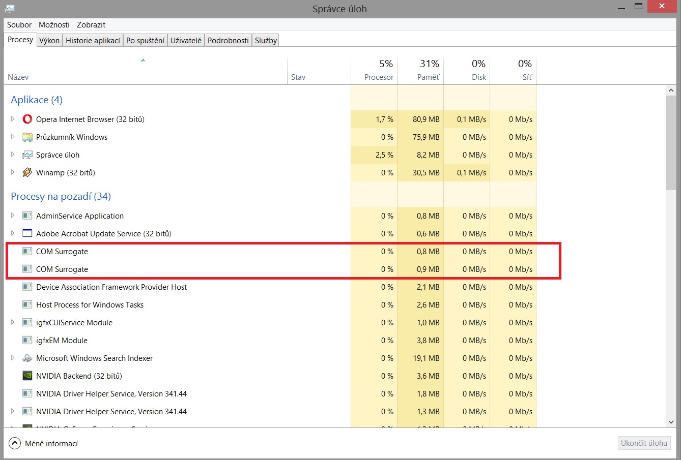 dnes jsem si všiml když sem najel do správce úloh že mi se mi zobrazí COM Surrogate 2x pod sebou a po zhruba 5 sekundách to zmizne.