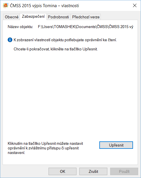 Zmena prav souboru a slozek je mi jasna, ale v zalozce "zabezpeceni" menit nejdou, v "upresnit" je t…