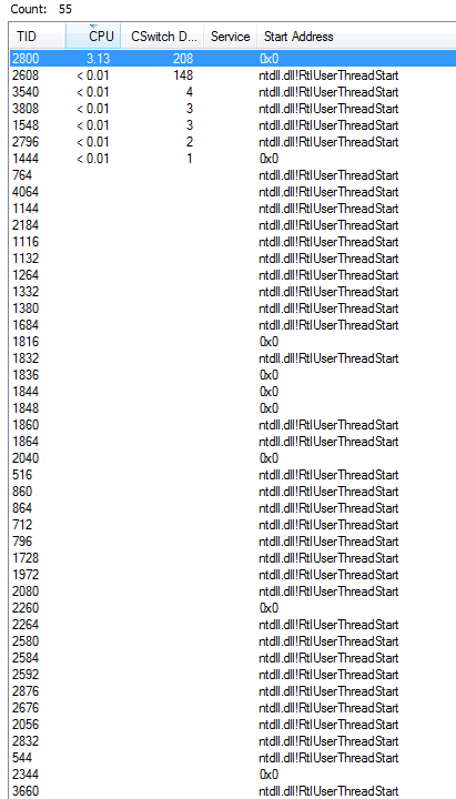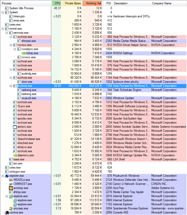 Na obrázku to není vidět, ale nejvíce žere TID 2800 (až 50 % CPU), tak jen doplňuji.