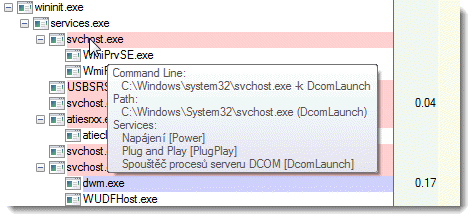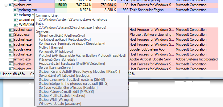 process explorer umí přímo zobrazit závisející služby na svchostu, ale dělá to v bublině - kde ji máš na screenu?