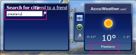 Neviem, čo v tom je, naposledy odporúčaná miniaplikácia počasie v mnohých slovenských mestách znázorňuje, len v Piešťanoch nie. No a to práve potrebujem, lebo tam bývam. Zaujímavé je, že keď Počasie z miniaplikácie otvorím na celú obrazovku, tam sa už počasie v Piešťanoch zobrazí.