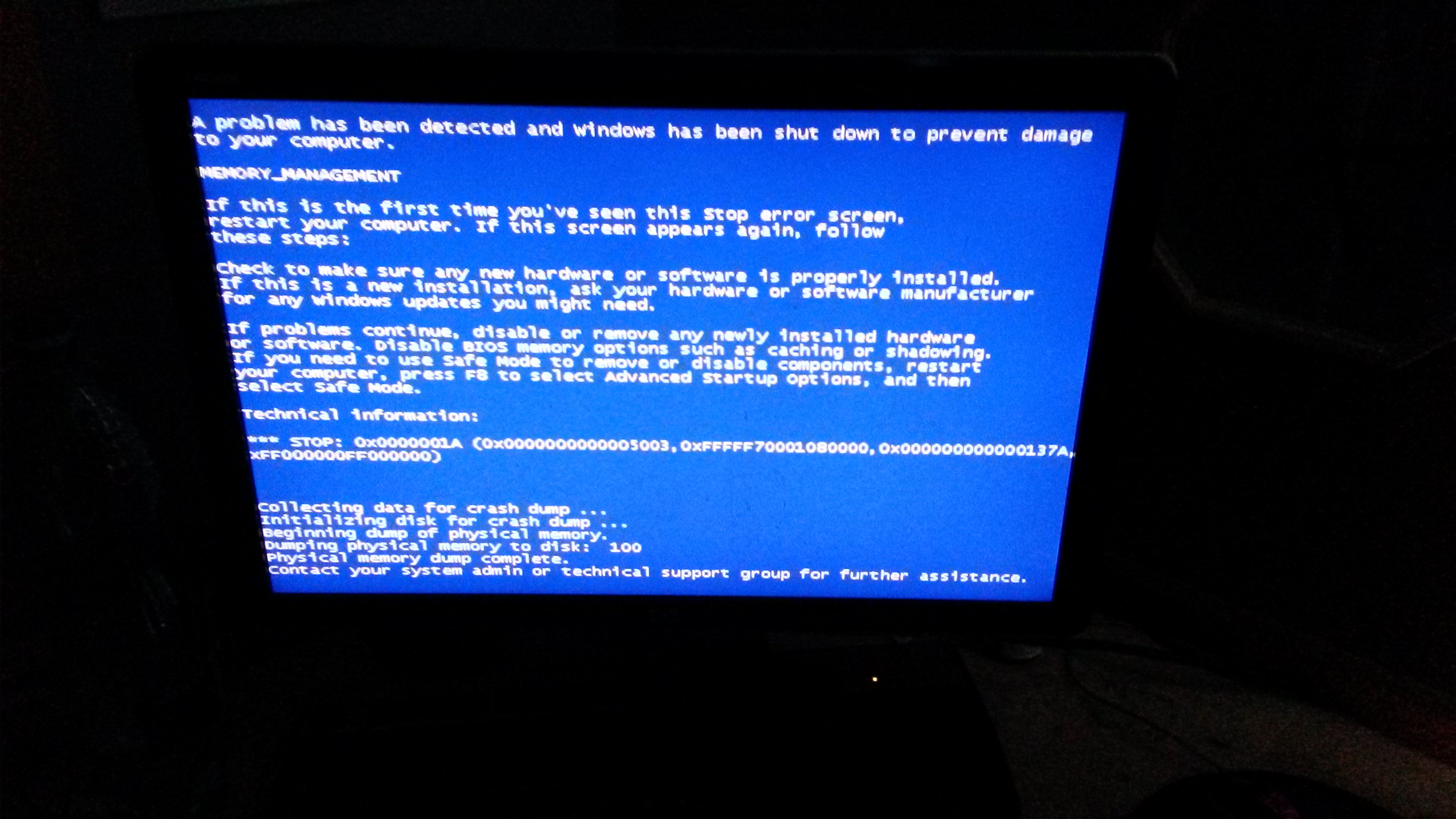 Nakonec po dlouhém načtení obrazovky mi tam vyskočila BSoD. Když jsem se potom na ten HDD podíval na druhém PC, psalo to tam, že šlo o "BCCode: 116". Prosím o nějakou radu co s tím. PC lze spustit jen v nouzovém režimu.
