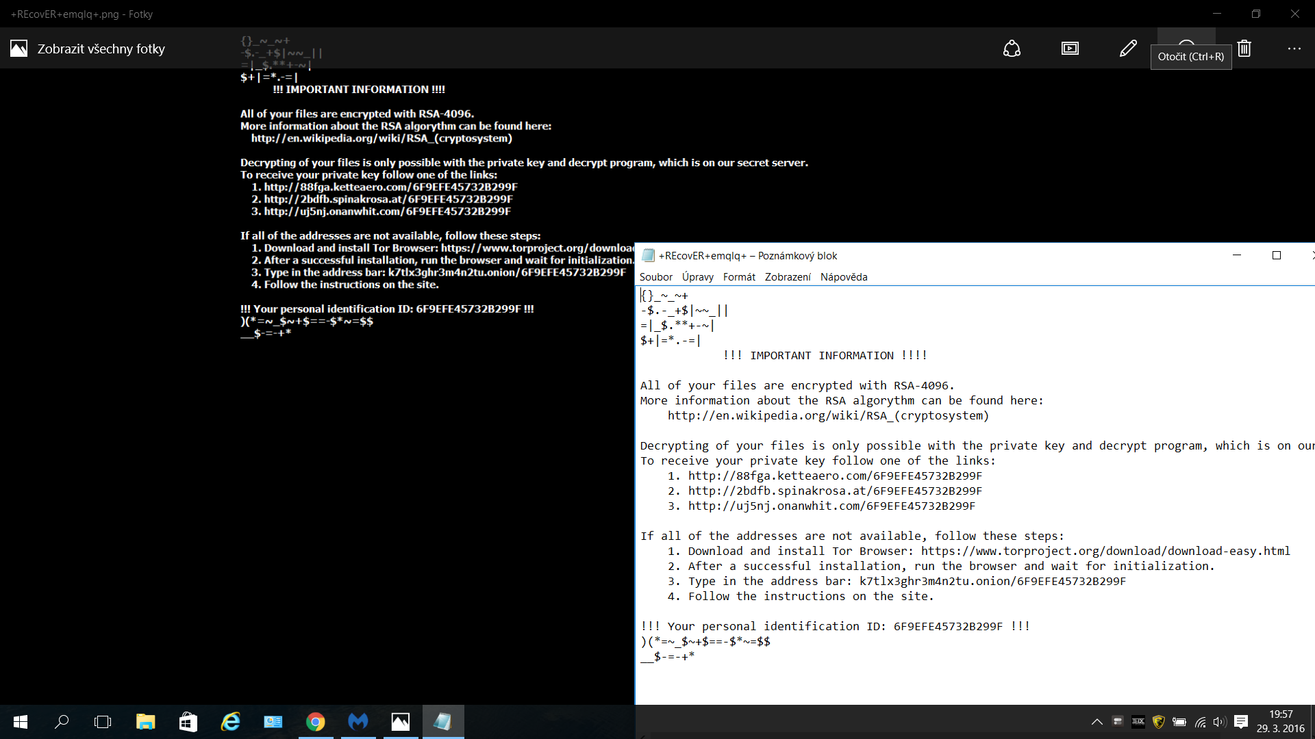 Ahoj kdyz zapnu pc vyjedou mi tabulky kde jsou napsaný nějaký adresy a v každý složce v pc mám textový dokument a obrázek s nazvem +REcovER+cksdn+ když jsem soubory smazal po restartu pc se tam objevili znovu a jeste vic nevím co s tím prosím o radu děkuji.