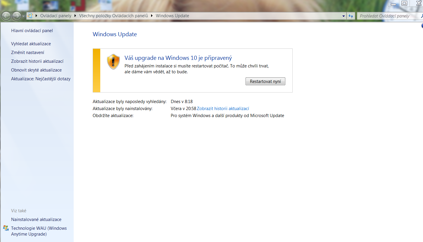 Momentálně je to v tomto stavu, viz obrázek. Nevím co dál, chci aby tam byli jen aktualizace pro W7, jako to bylo dřív. Klidně to nastavení zaplatím někomu kdo bude ochoten mě to udělat. Mám nainstalovaný Team Viewer 10. Děkuji.
