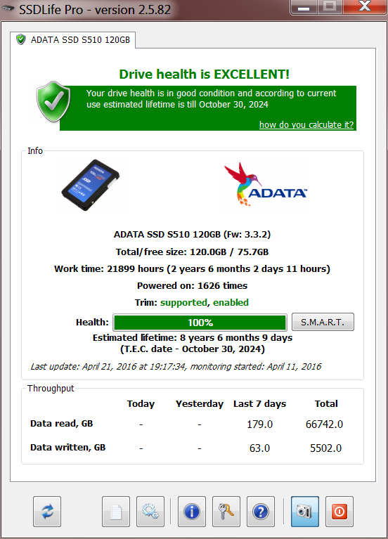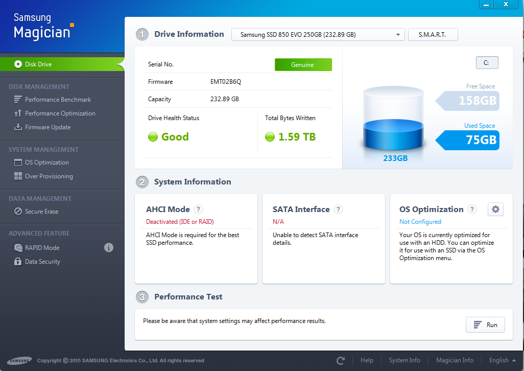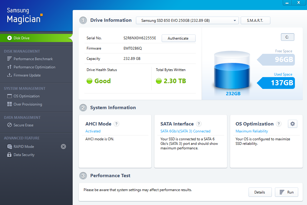 Cca před 5 měsící jsem si koupil SSD a teď se v softwaru od samsungu (Samsung Magician - viz screen) zobrazuje počet zapsaných TB: 1,59. Přijde mi to trochu moc na to, že mám na disku cca 75 GB a nic na něj nezapisuju. Zkoušel jsem vypnout pagefile a používat ho na 1TB HDD, ale TBW stále roste (cca 0,01 - 0,05 TB) za den.