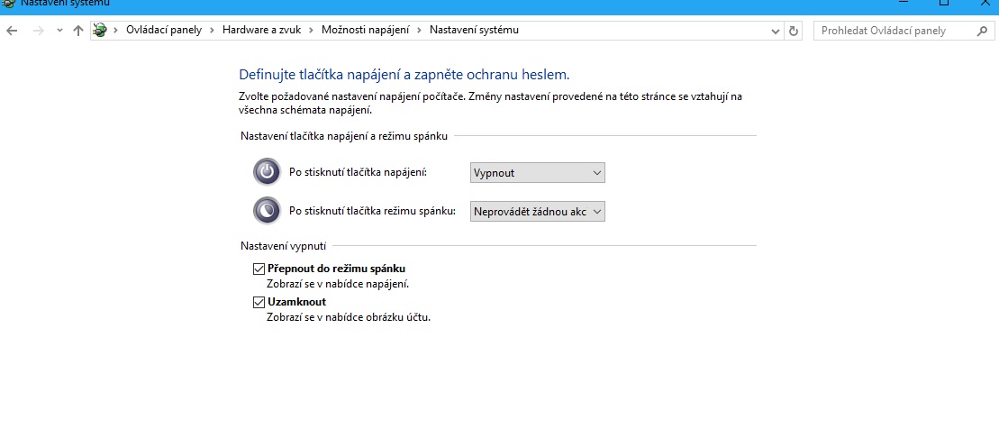 Jako dle návodu.. Pak tedy: Přejdeme na Ovládací panely - Možnosti napájení - Nastavení systému (Na…