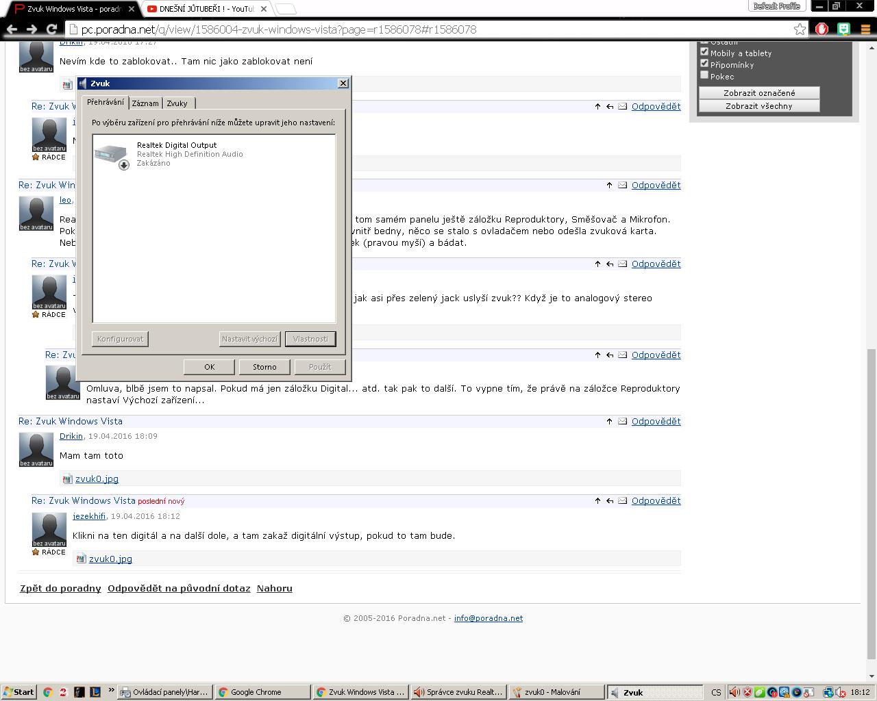 Realtek Digital Output No to bude ono. Stačí vlézt do nastavení zvuku, a ten digitální výstup vypno…