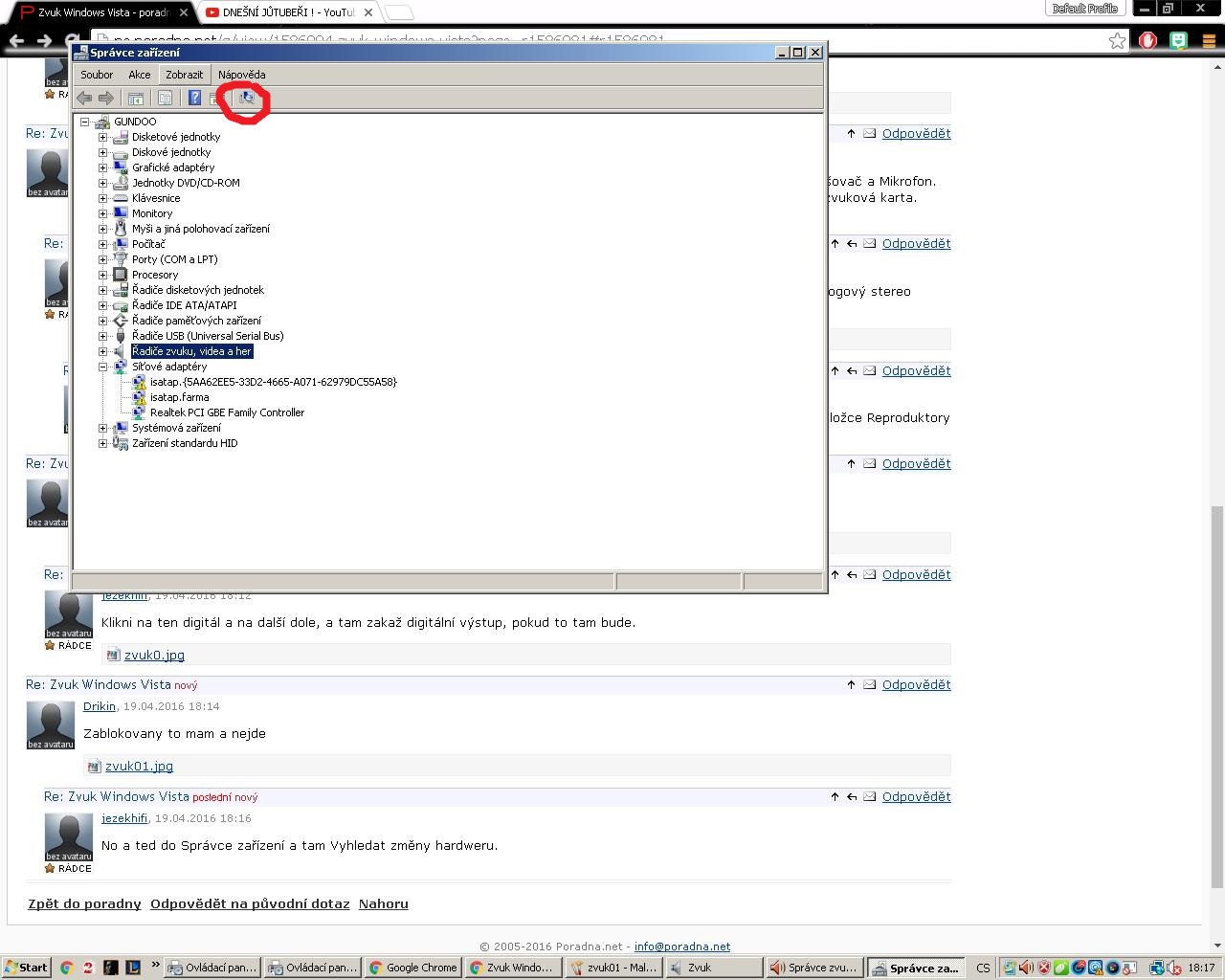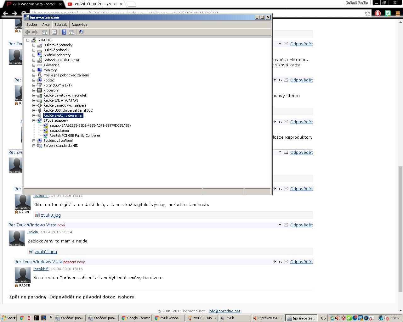Koukám, že to se nedá dopátrat ničeho. V tom správci zařízení u Zvukových zařízení to něco píše ? vy…