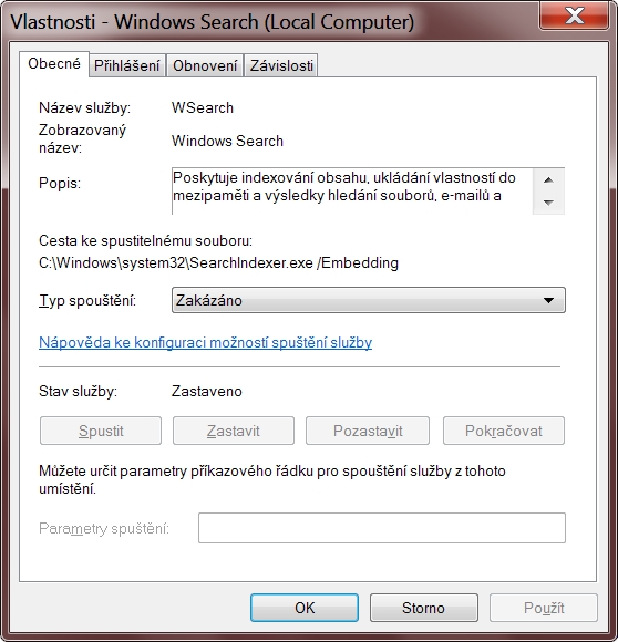 Tak tu službu nechej zapnutou, ale nastav si jenom to, co opravdu chceš indexovat.