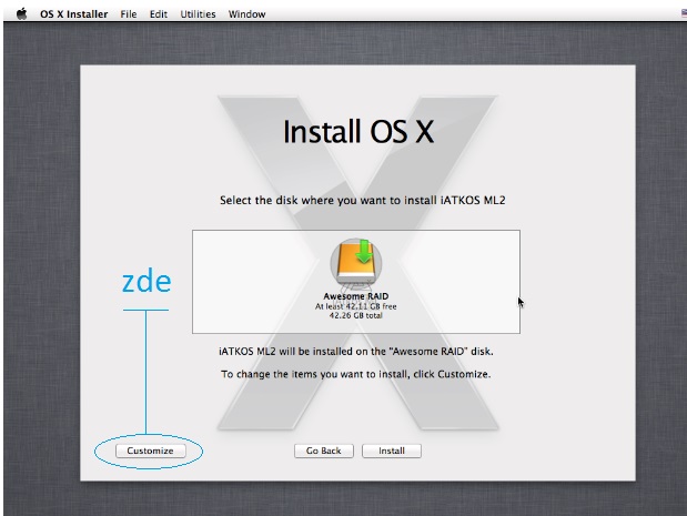 • Tak pred instalací u volby disku, mas moznost oznacit, co vse chces k instalaci pridat, tak oznac jen to esonsiální/dulezité na chod /+ "Kext".