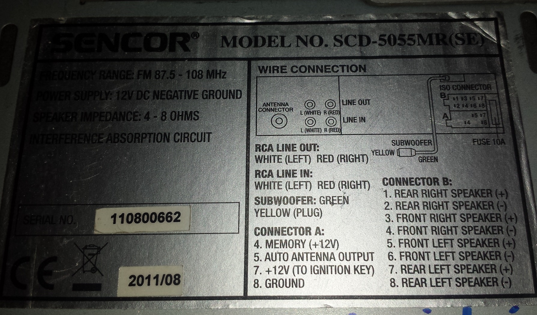 Na pozici 5 konektoru "A", jak je vyobrazeno na štítku rádia. poslední