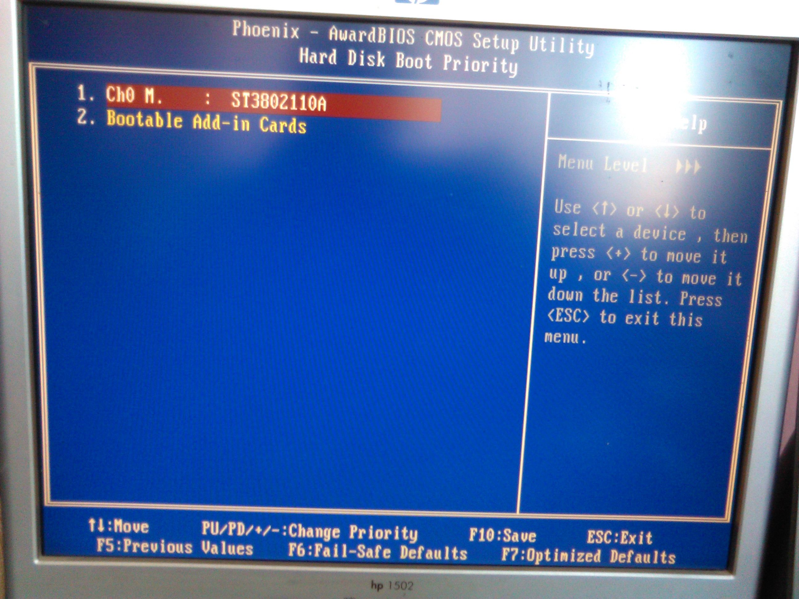 nevím si rady jak přeinstalovat/opravit na starém PC Windows XP...CD mám...jenže když ho vložím a stisknu enter nic se neděje...zde posílám foto Biosu, jak to mám nastavené..jelikož asi bude někde chyba tam v nastavení. Myslím, že tam je nastavený disk a ne CD i po mé změně...jenže když dám rovnou BOOT menu (U mě F11 po spuštění), tak mi vyjede jen ta šedivá tavulka, kde je hlavní hard disk, jenže tam mi nic přenastavit nejde, furt tam zůstává ten Hard disk...když kliknu enter na CD ROOM tak me to hodí hned na tu černou obrazovku at vlozim disk a nic se znovu nedeje. Předem díky za jakoukoliv radu. Snažím se to přeinstalovat, protože mi to hlásí chybu operačního systému po zapnutí a nic jiného nenaběhne. Díky.