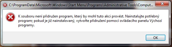 Počítač > Spravovat ... k souboru není přidružen program