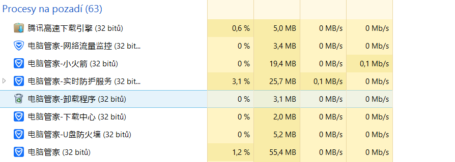 Další printscreen, tentokrát ze správce úloh ukázal procesy na pozadí těch aplikací.
