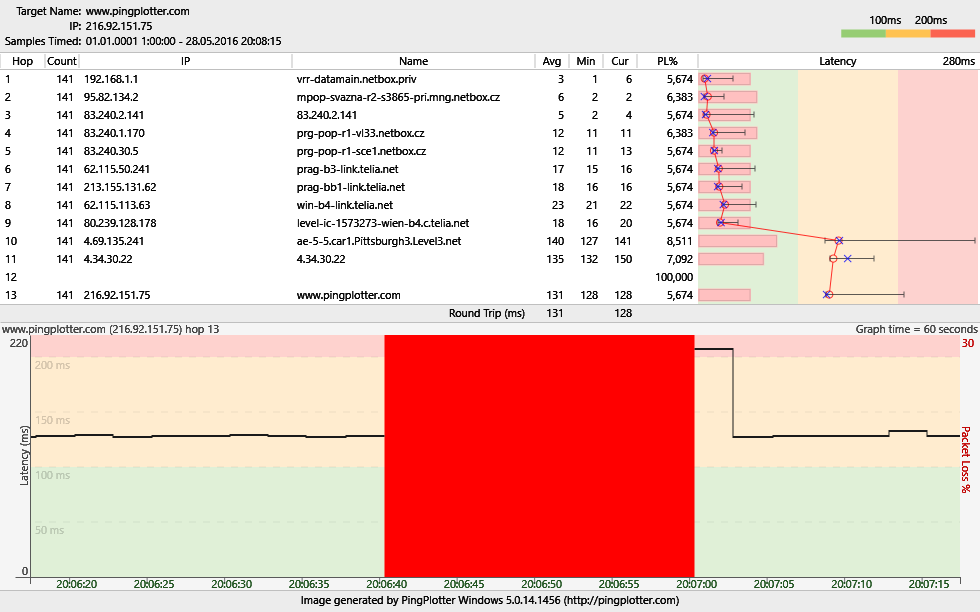 Ani ne po 5minutách se hra odpojila od serveru a po pár sekundách se znovu načetl internet. Přikládám screen z pingplotteru.