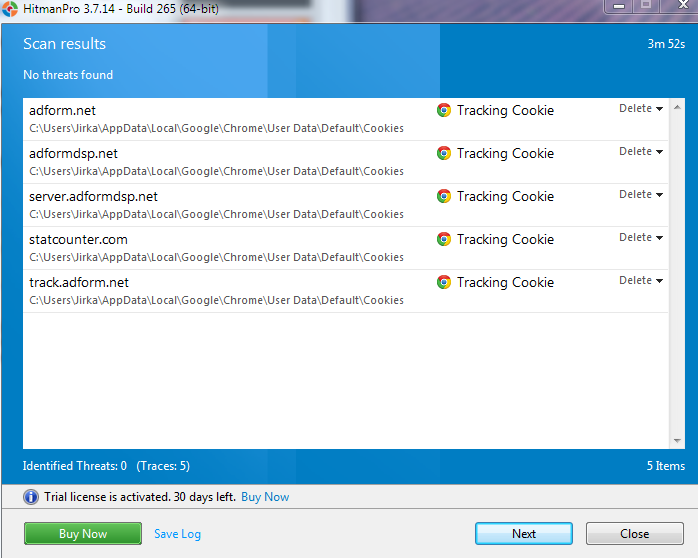 Co jsem použil na opravu: Malwarebytes Anti-Malware, Adware-Removal-Tool, adwcleaner_5.119, JRT, tdsskiller, HitmanPro, dokonce i Windows Defender. Všechno jsem použil minimálně 2x, současný problém mi hlásí pouze HitmanPro a JRT. Mazal jsem veškeré cookies, přeinstaloval Chrome. Problém je, že když nezapnu prohlížeč a použiji všechny programy, pak se do dalšího zapnutí adware zpravidla neukáže, popř. jen minimálně. Po zapnutí naskočí znovu.