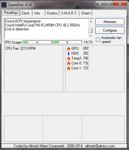 1. screen (s větší teplotou) je z WoWka, ale už bez baterky. S ní se pohybovaly stupně v rozmezí 85°C - 97°C.