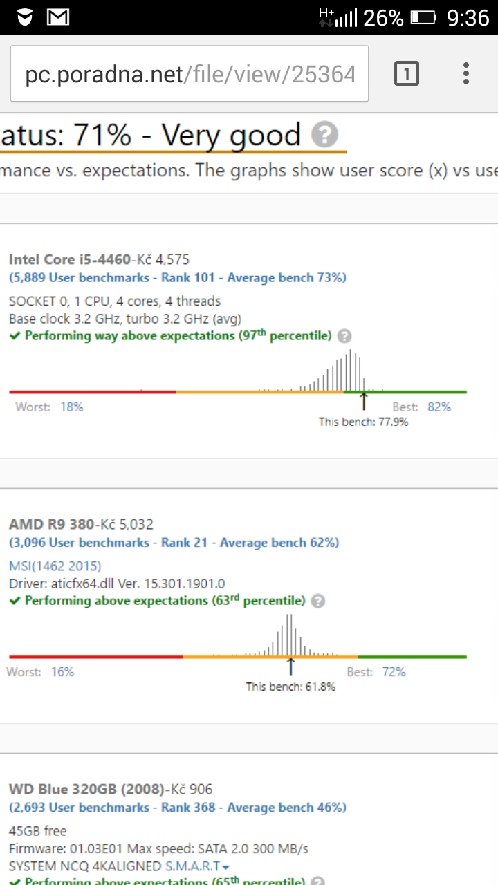 Ale u všech komponent je pp několika měsících l, jiný průměr u disku bylo 70 % teď tam je 64 % nejlepší. Lidi u disku mají průměr 68 % teď asi jiny test.