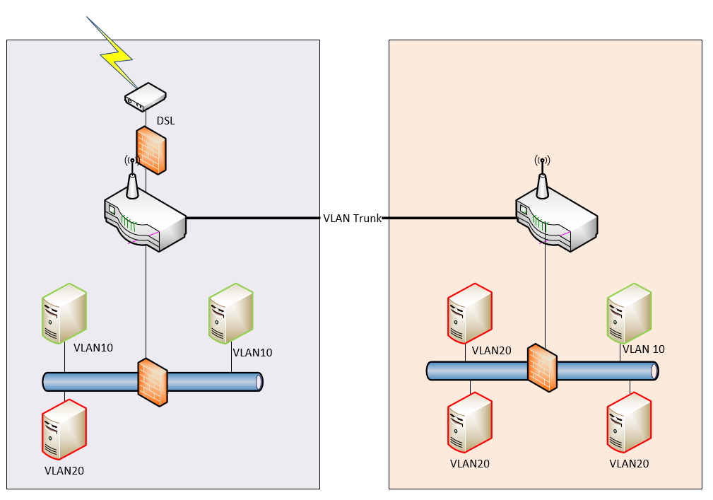 Ja bych začal řešením na obrázku nahoře. Druhý router a VLany se tam dají dodělat v případě potřeby kdykoliv, pokud by se ukázalo, že je to opravdu třeba.