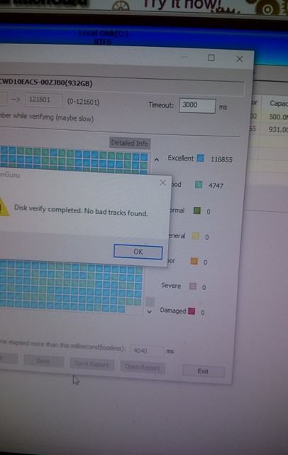 Disk jsem testoval v PartitionGuru Free 4.8.0. - výsledek viz. obrázek (fotil to on