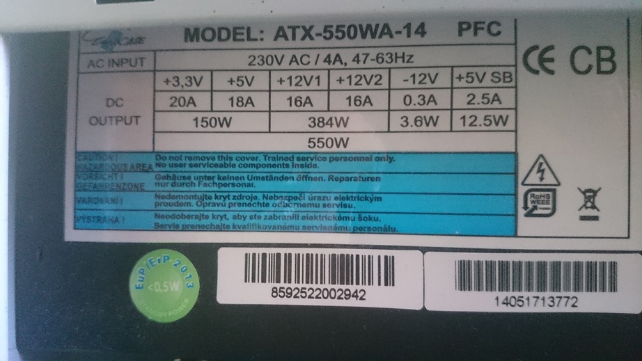 PSU: Eurocase ATX-550WA-14