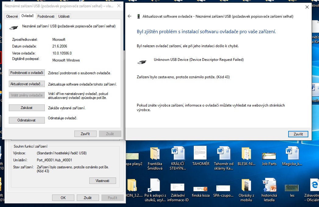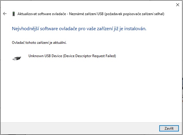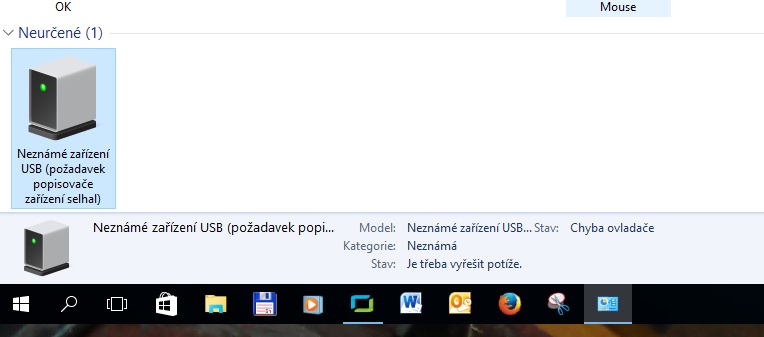 Pise to nezname zarizeni (pozadavek popisovace selhal), t.j. nefunguje ti ten kabel, alebo usb na te…