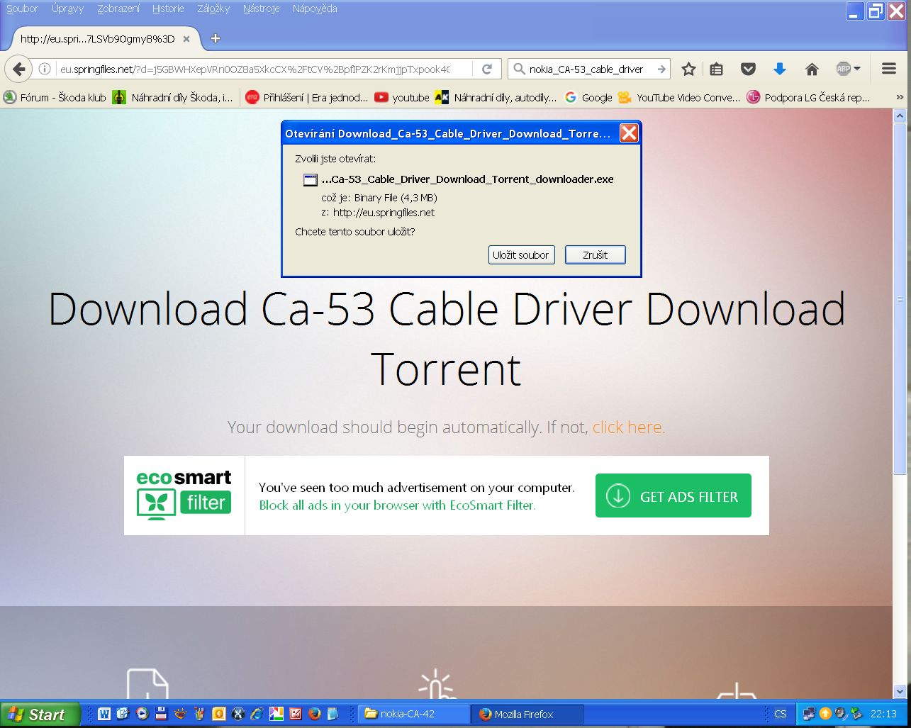 Tak jsem si stáhnul ten ovladač ... Nestáhl. Stáhl sis nějakou breberku (downloader - možná nějaký…