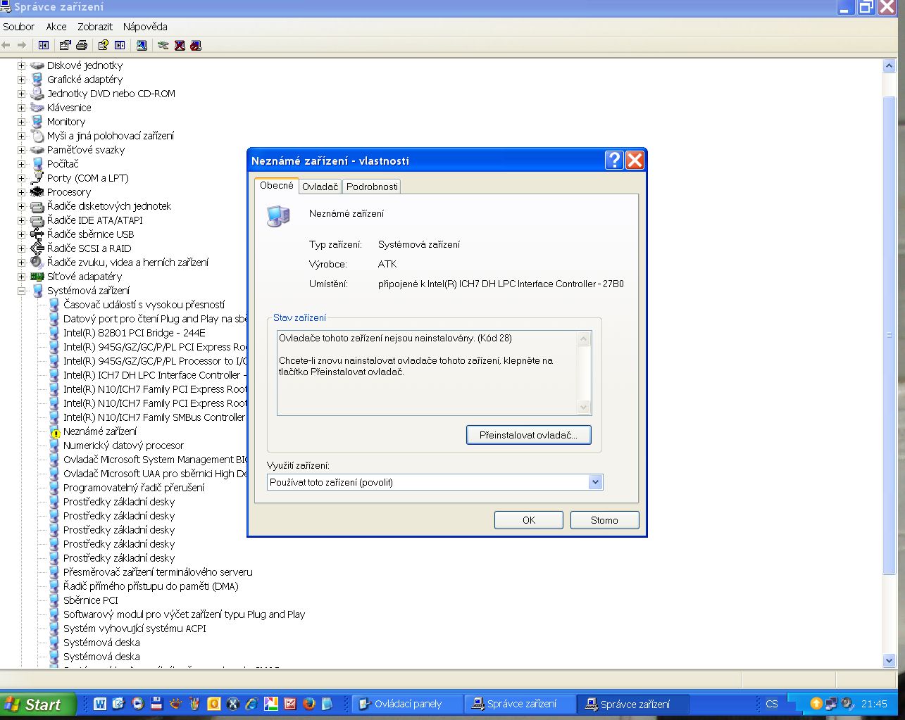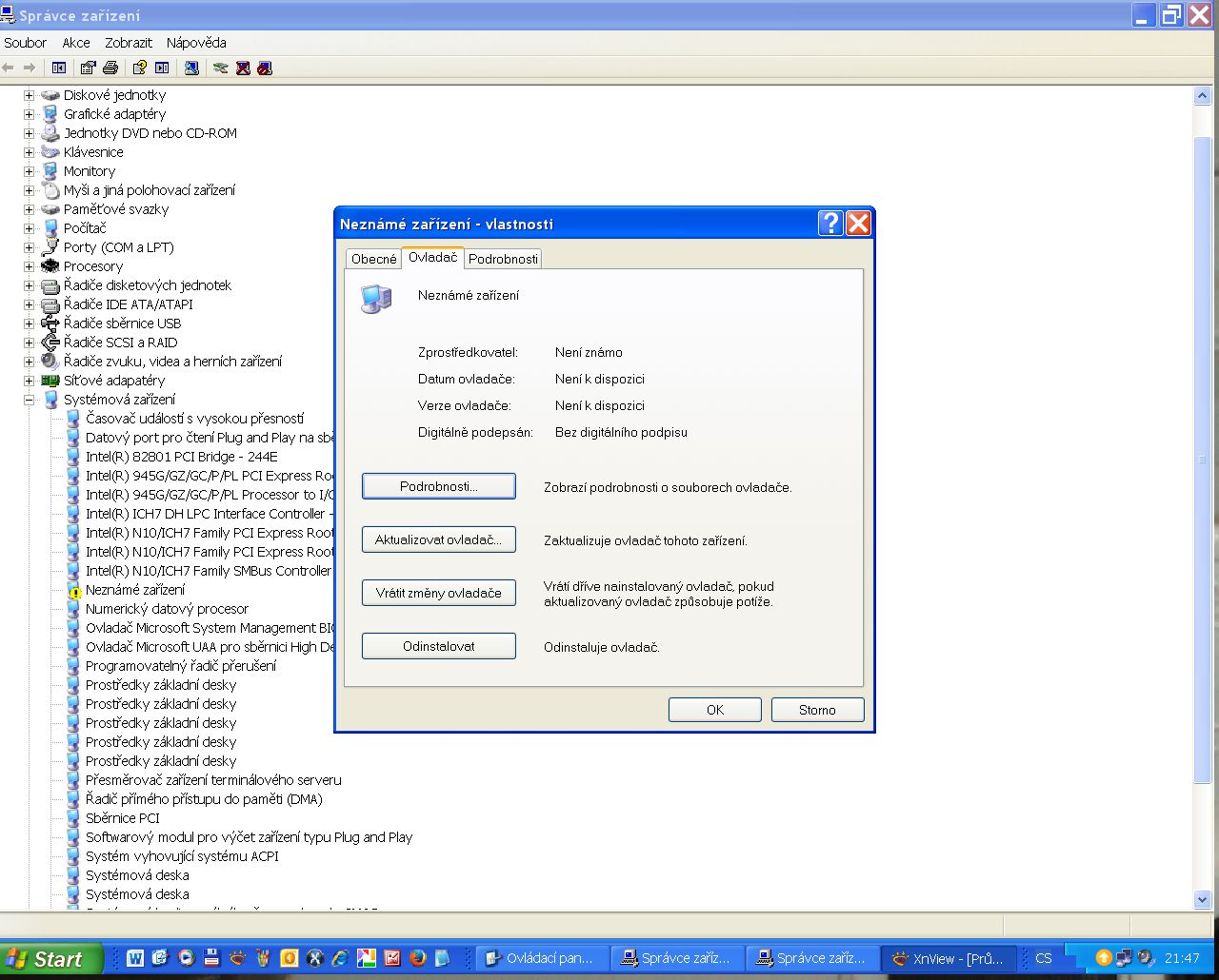 Tak jsem si stáhnul ten ovladač viz.foto.Otevřel jsem si správce zařízení foto5 a neznámé zařízení f…