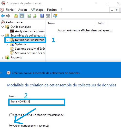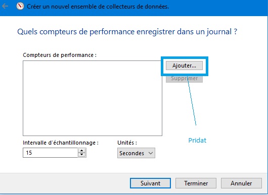 2) Nasledovne zvolis : PRIDAT MANUALNE + "Jurnal pocitadla vykonu" /Jako na obrazku, nevim jak je to v Cestine :