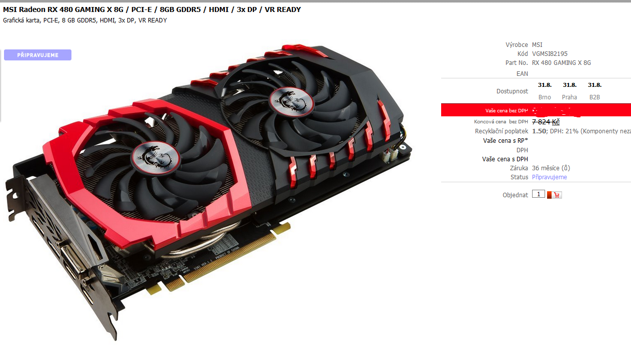 Na Alze už Sapphire Nitro+ RX 480 jsou, včera jsem ji kupoval pro kamaráda.